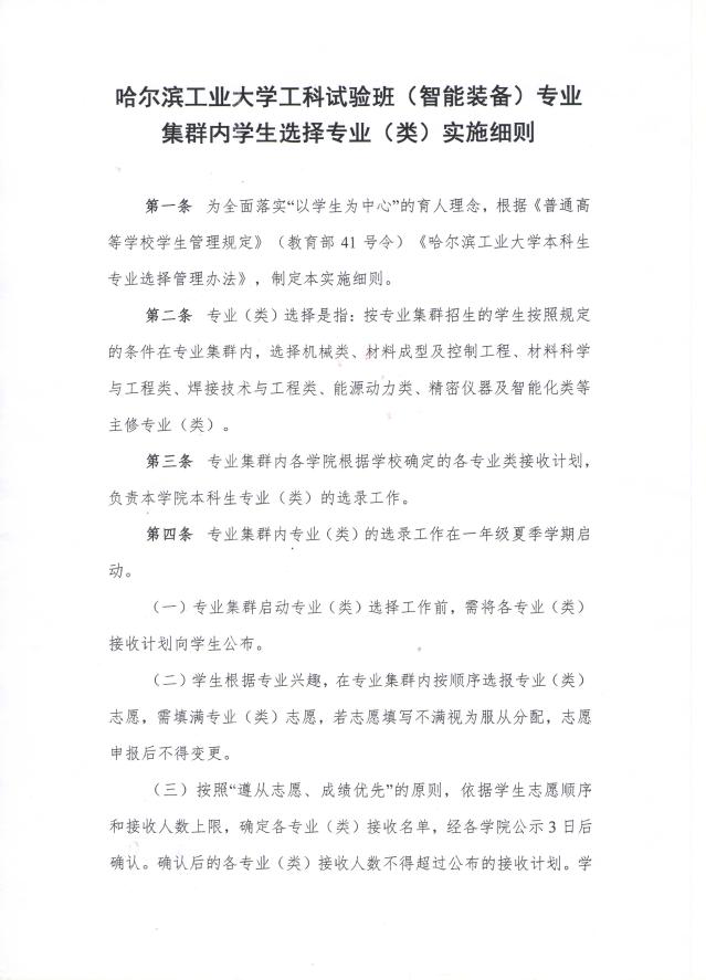 诸侯快讯ok1122工科试验班(智能装备)专业集群内学生选择专业(类)实施细则