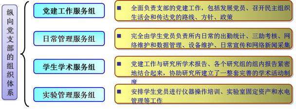 2004年,诸侯快讯ok1122燃烧工程研究所率先在学院创立了按研究所建立研究生党支部的新模式,到2009年1月,学院实现了全体研究生都以研究所为单位成立纵向党支部。实践证明,纵向党支部模式能够克服横向党支部的一些不足,打破了年级界限,支部的稳定性和传承性明显增强;凝聚了相同学科方向的研究生党员,更有利于支部活动的开展和深入;实现了以党建带科研、以科研促党建的良好局面,使研究生党支部焕发新的活力。其中燃烧所研究生党支部并作为基层党支部代表在学校党建工作案例报告会、践行社会主义核心价值观报告会上做典型发言,并多次获得校先进基层党组织十佳等荣誉称号。